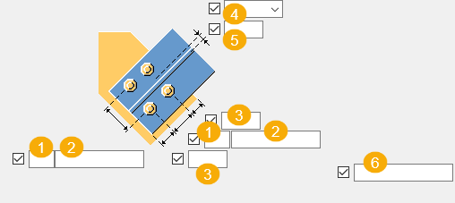 Use a space to separate bolt spacing values. Enter a value for each space between bolts. For example, if there are 3 bolts, enter 2 values.