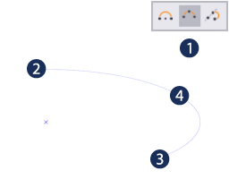 • Click , and then pick three points: the center point, start point, and end point of the arc.