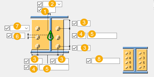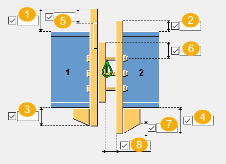 End plate edge distance from the main part upper edge. If you do not enter a value for the end plate edge distance on the main part side, the secondary part side value is used on the main part side as well. |