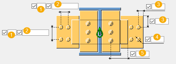 Bolt spacing. Use a space to separate bolt spacing values. Enter a value for each space between bolts. For example, if there are 3 bolts, enter 2 values. |