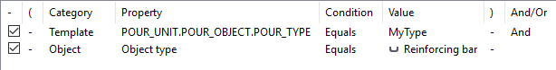 - In the Property box, enter POUR_UNIT.POUR_OBJECT.POUR_TYPE.