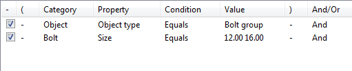 In the second filter rule, define that the bolt size must be 12.00 or 16.00: