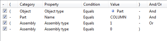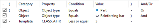 - In the Value list, select Part for the first rule and Reinforcing bar for the second rule.