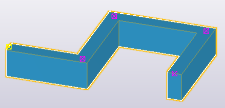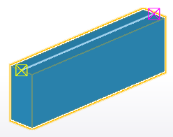 Tekla Structures indicates the direction of a part with handles. When you select a part, Tekla Structures shows the handles. The handle at the part start point is yellow, the rest are magenta.