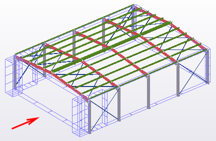 The loads induced by the wind in the global x direction are multiplied by 3 at both corners of wall 1 (windward wall), and at the other corner of walls 2 and 4 (side walls). The zone widths are defined by using dimensions.
