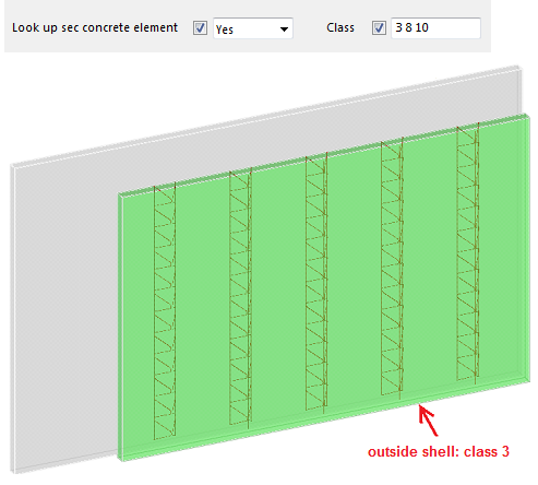 Select whether a second concrete element affects the creation of the girders. Define the class of the second wall in the Class box.