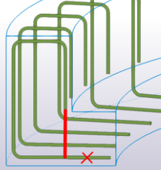 To adjust how rebar set bars follow a sharp or curved part corner, define the chamfer type of the guideline at the part corner: select None for a sharp corner or Arc point for a curved corner. |