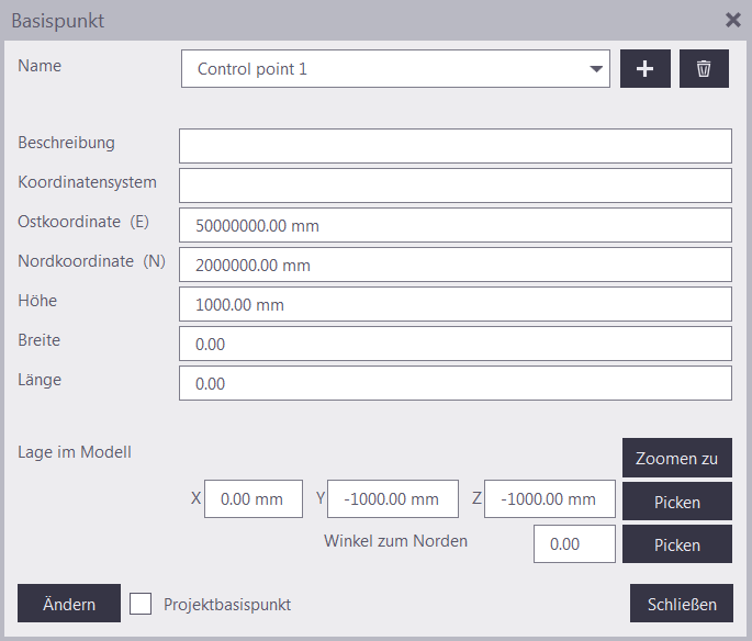 - Osten, Norden, Höhe: Abstände im übergeordneten System.