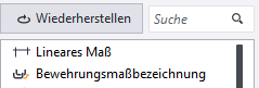 - Wählen Sie aus der Objektliste auf der linken Seite den Objekttyp aus, für den das Layout des Eigenschaftenbereichs geändert werden soll. Wählen Sie beispielsweise Lineare Bemaßung aus.