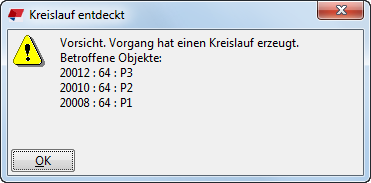 Tekla Structures schreibt auch die Meldung „Zyklus in Parameterwandler entdeckt“ in das Verlaufsprotokoll der Sitzung und listet die Objekte auf, die diese zyklische Abhängigkeit betrifft, damit Sie die zyklische Abhängigkeit leichter finden und beheben können. Wenn Sie sie nicht beheben, funktioniert die benutzerdefinierte Komponente nicht korrekt.