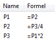 Im folgenden Beispiel wird die Variable P1 durch die Variablen P2 und P3 von sich selbst abhängig: