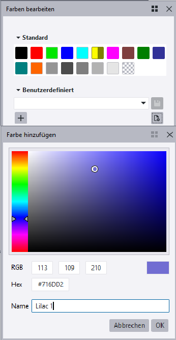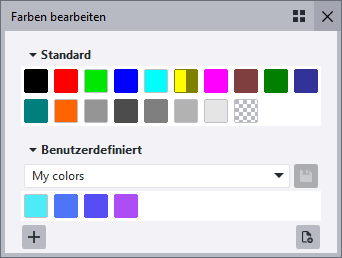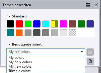 Neue Farben hinzufügen (Hinzufügen) und neue benutzerdefinierte Farbpaletten speichern (Neu).