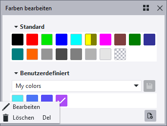 - Zum Bearbeiten einer Farbe klicken Sie in der Palette mit der rechten Maustaste auf die Farbe und dann auf Bearbeiten.