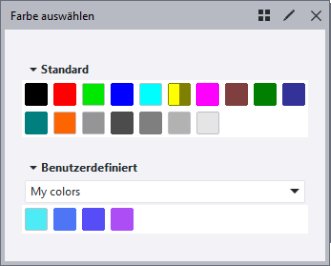 - In der kontextabhängigen Symbolleiste des jeweiligen Zeichnungsobjekts klicken Sie auf das Feld Farbeinstellung. Hier können Sie die Farben aus den verfügbaren Paletten auswählen. Zum Öffnen des Modus für benutzerdefinierte Farbbearbeitung klicken Sie oben auf die Schaltfläche