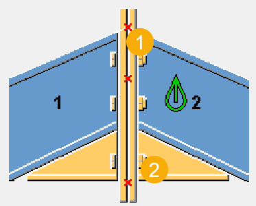 Standard Stirnplatten auf Winkelhalbierung zwischen den beiden Riegeln. Die Voutenbleche werden im gleichen Winkel wie die Stirnplatten platziert. AutoDefaults kann diese Option ändern. |