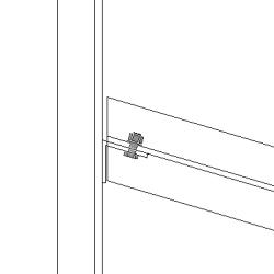 Gebogenes Blech verbindet zwei Träger. Das Nebenteil ist schräg. Das Blech kann an verschiedenen Postionen platziert werden. |