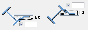 Abstand zwischen Oberkante des gebogenen Blechs und Oberseite des Nebenteils. Die Position der Blechoberkante verändert die Höhe des gebogenen Blechs. Durch einen positiven Wert wird die obere Position näher in Richtung Mittelpunkt des Trägers verschoben und verringert somit die Größe des gebogenen Blechs. Durch negative Werte wird die Blechgröße erhöht. |