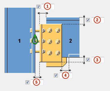 Spalt zwischen dem Steg des Nebenteils und dem Hauptteil. Tekla Structures fügt den hier eingegebenen Wert dem auf der Registerkarte Abbildung hinzugefügten Abstand hinzu. |