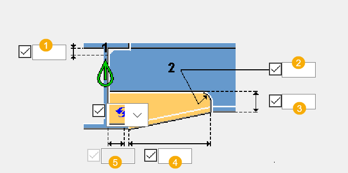 Eckschnittgröße am unteren Flansch für lineare und konvexe Fasen. |