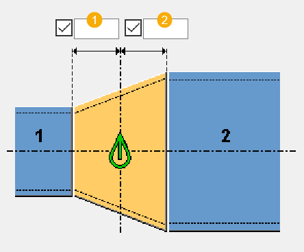 Mit Offshore Typ 2 (195) erstellen Sie eine konische Stoßverbindung zwischen zwei Rohrprofilen mit unterschiedlichen Durchmessern. Die Länge und den Schweißnahttyp des Stoßes können Sie bestimmen.