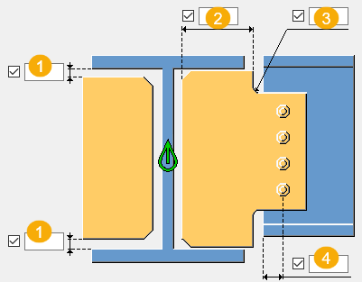 Teil(e), in dem/denen Langlöcher erstellt werden. Die Optionen sind abhängig von der jeweiligen Komponente. |