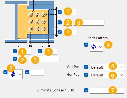 Wählen Sie, wie die Maße für die Position der vertikalen Schraubengruppe gemessen werden. Durch Einstellen der Position auf Unten werden die auf der Registerkarte Anpassteile angezeigten Positionen 1 und 2 gegeneinander ausgetauscht. |