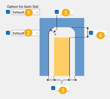 Teil(e), in dem/denen Langlöcher erstellt werden. Die Optionen sind abhängig von der jeweiligen Komponente. |