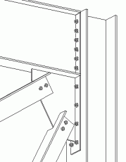 Verbandsprofil: T, L Rahmentyp: Stütze und verlängerte Stirnplatte An verlängerte Stirnplatte geschweißtes Knotenblech. Verbandsstäbe werden an das Knotenblech geschraubt. |