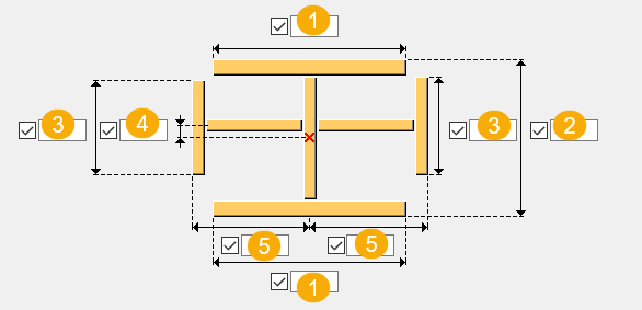 Passen Sie die Lage der horizontalen Teile im Verhältnis zu den vertikalen Teilen an. Standardmäßig beträgt die Exzentrizität 0. Die Verbindung der Bleche wird mittig am vertikalen Blech hergestellt. |