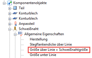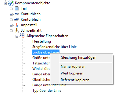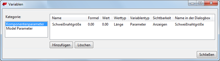 Im folgenden Beispiel wird eine Variable erstellt, die alle Schweißnähte in einer benutzerdefinierten Komponente auf eine vorgegebene Größe einstellt. Nachdem Sie die Variable erstellt haben, können Sie die Schweißnahtgröße direkt im Dialogfeld der benutzerdefinierten Komponente ändern.