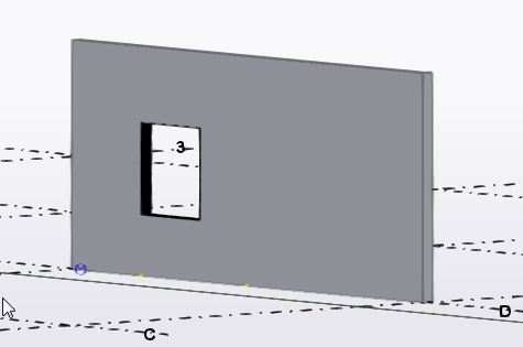 Bei diesem Beispiel wird folgendes Wandelement-Bauteil im Modell bemaßt: