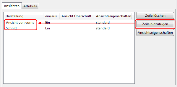 Klicken Sie im Bereich Ansicht erstellen auf Zeile hinzufügen, um Ihrer Zeichnung neue Ansichten hinzuzufügen.