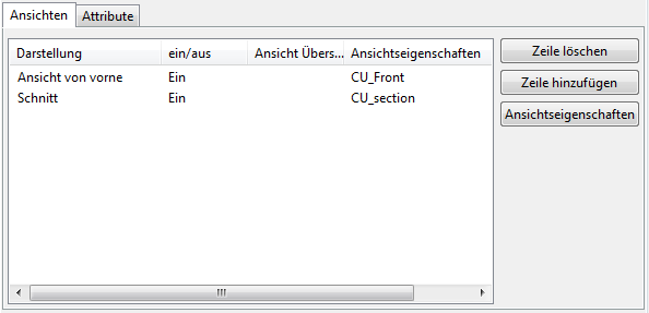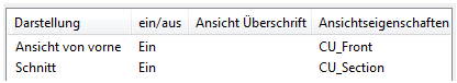 Wählen Sie im Bereich Ansicht erstellen für die Vorderansicht CU_Front und für die Schnittansicht CU_Section aus.