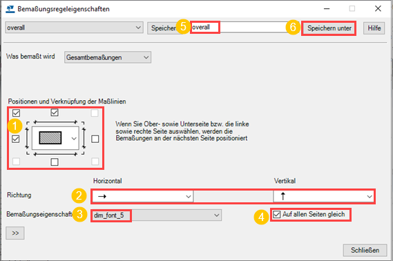 Geben Sie der Bemaßungsregel einen eindeutigen Namen, und klicken Sie auf Speichern unter.