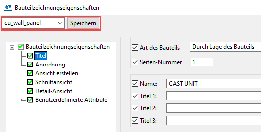 Die Zeichnungseigenschaftendatei cu_wall_panel können Sie später für Zeichnungen mit ähnlichen Einstellungen verwenden.