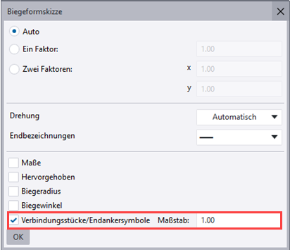 Symbole für Bewehrungsverbindungsstücke und Endanker in Bewehrungsbiegeplänen anzeigen
