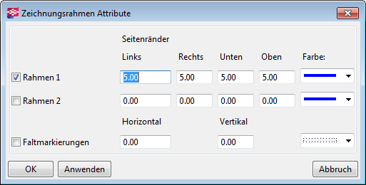 - Aktivieren Sie im Dialogfeld Zeichnungsrahmen Attribute die Kontrollkästchen des Rahmens, den Sie drucken möchten.
