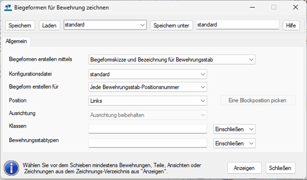 Definiert die Position der Biegeformen relativ zum Betonteil. Die Optionen für Biegeformskizze und Bezeichnung für Bewehrungsstab und Assoziative Bezeichnung sind unterschiedlich: