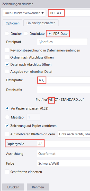 - PDF A3: Papiergröße = A3, Dateipräfix = A3_
