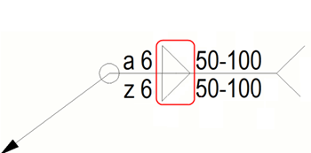 Neben den Schweißnahtsymbolen enthält die Schweißnahtbezeichnung eine Referenzlinie und einen Pfeil. Der Pfeil verbindet die Referenzlinie mit der Pfeilseite einer Verbindung. Die Schweißnähte auf der Pfeilseite und auf den anderen Seiten eines Teils können unterschiedliche Schweißnahteigenschaften aufweisen.