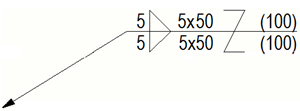 In diesem Beispiel wird wie im vorherigen Beispiel eine versetzte, unterbrochene Schweißnaht ausgewählt. Allerdings ist die erweiterte Option XS_AISC_WELD_MARK auf TRUE eingestellt, damit eine Schweißnahtbezeichnung gemäß AISC erstellt wird.