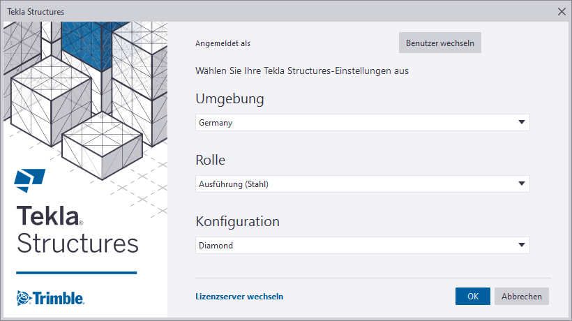Tekla Structures weist viele verschiedene Konfigurationen auf. Die von Ihnen verwendbaren Konfigurationen richten sich nach Ihren Abonnements oder Lizenzen.