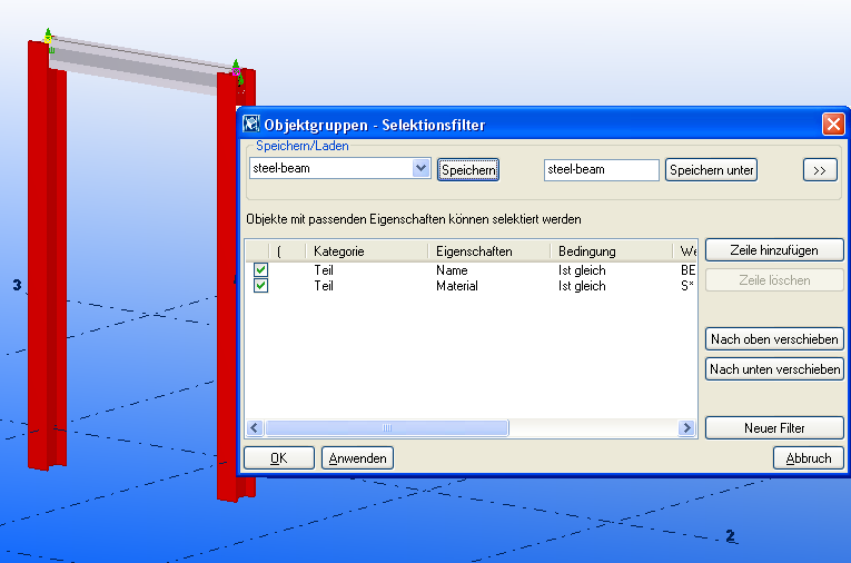 - Speichern Sie den Filter als Stahlträger.