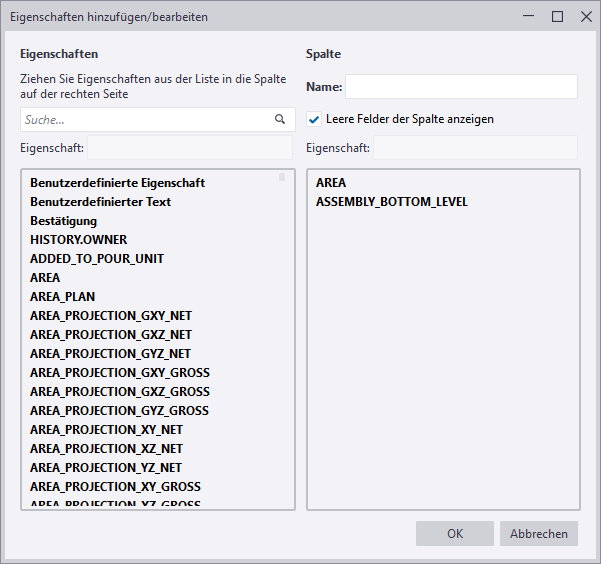 Ändern der Reihenfolge der Eigenschaftenspalten |