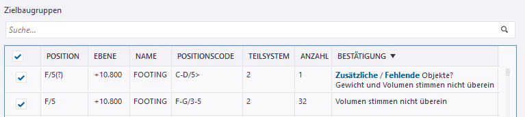 Durchsuchen der Liste der Zielbaugruppen oder -bauteile und Beheben möglicher Fehler vor dem Ausführen der Positionierung.