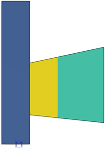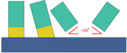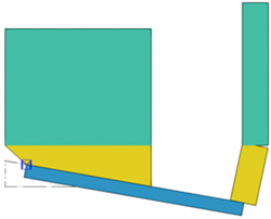 Die Komponente passt nur auf Nebenteilflächen, die einen Winkel zwischen -35° und 35° Grad mit dem Hauptteil bilden. Das Beispielbild unten zeigt, dass für Nebenteile mit einem Winkel von mehr als 35° kein zusätzliches Material erstellt wird.