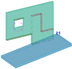 Tekla Structures fügt das hinzugefügte Material automatisch an das Nebenteil an, um ein einziges kombiniertes Teil zu bilden.