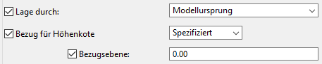 Die Bezugsebene wirkt sich nur auf das Attribut TOP_LEVEL aus, wenn Lage durch auf Modellursprung oder auf den Projektbasispunkt im Modellursprung eingestellt ist.