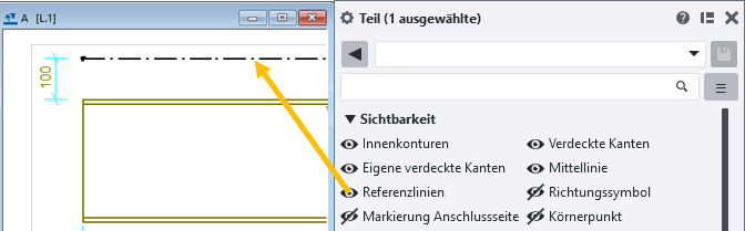 Über diese erweiterte Option können Sie in Zeichnungen die Position der Referenzlinien einstellen.
