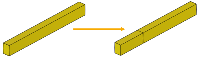 Beim Trennen von Teilen behält Tekla Structures die Eigenschaften und angefügten Objekte für die getrennten Teile bei.